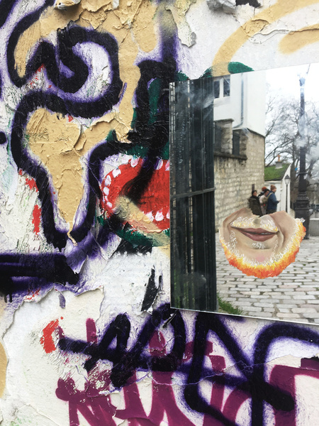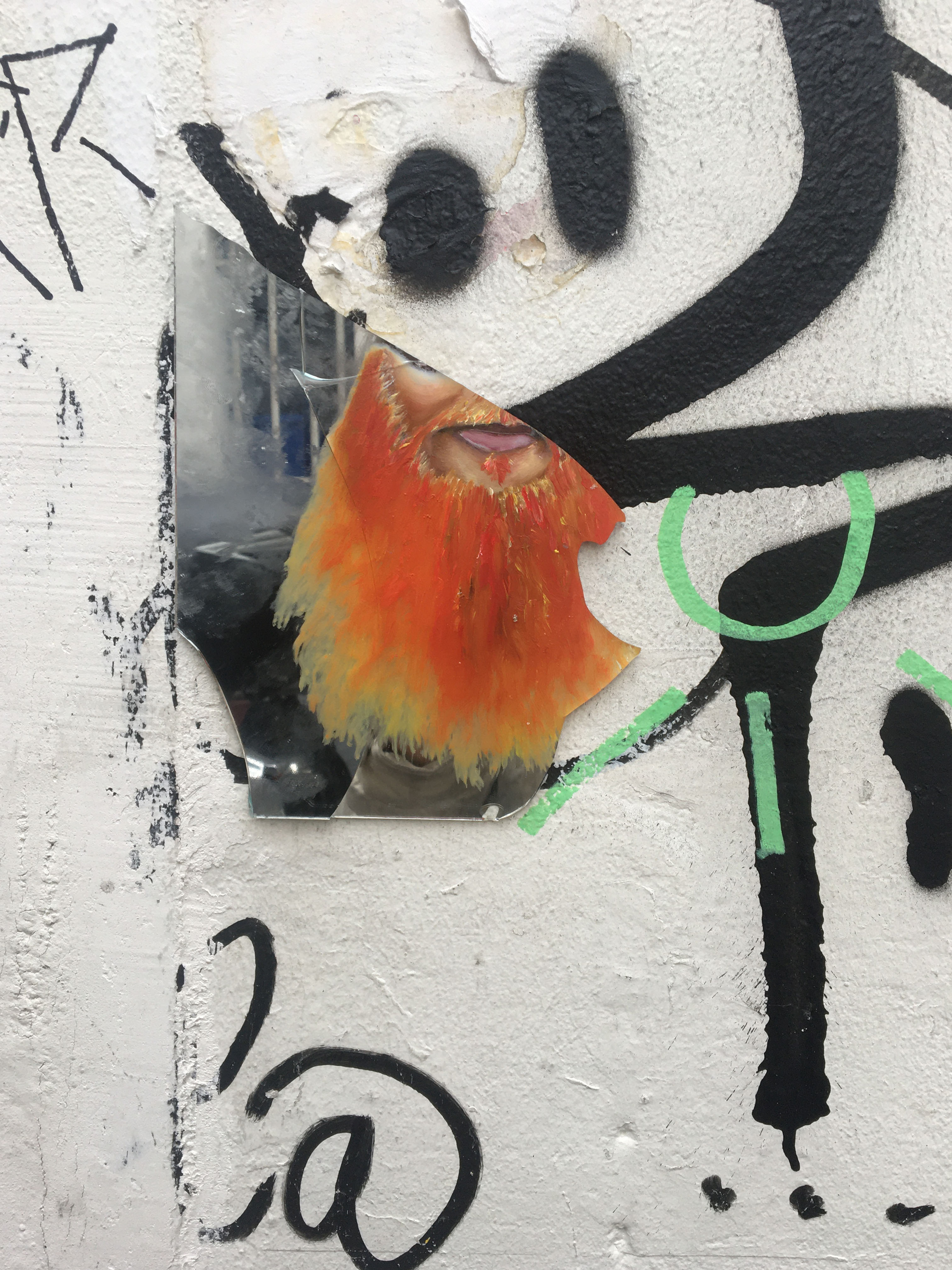 Accrochage sauvage de “barbes rousses” dans le 18ème arrondissement de Paris, avec une carte légendée et une piste sonore disponible dans la galerie de Jeune Création